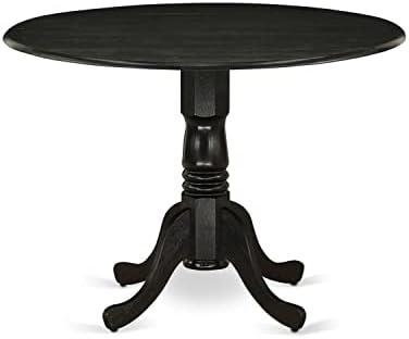 East ‌West Furniture DMT-ABK-TP Dublin Dining ⁣Room ‍Table – a ⁤Round​ Wooden Table Top with Dropleaf & Pedestal Base, 42×42 Inch, Wirebrushed ⁢Black