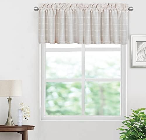 These beautifully designed embroidered plaid valances offer a touch of classic charm for various spaces in your home. Made from high-quality linen and polyester blend materials, they boast a robust construction that ensures durability and longevity, making them a practical choice for any room. Their light beige color and embroidered details add an inviting warmth, while also allowing gentle sunlight to cascade through, creating a soft ambiance in kitchens, bathrooms, or cafes. The easy-to-install rod pocket design allows for quick hanging, making them a convenient addition to your home decor.
