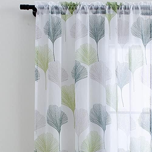 These elegant panels offer a perfect blend of style and functionality, making them an exceptional choice for anyone looking to enhance their living space. The soft, semi-sheer fabric allows light to gently filter through, creating a warm and inviting atmosphere. The beautiful ginkgo leaf pattern in shades of olive green, white, and dark emerald adds a touch of nature-inspired elegance. With a length of 84 inches and a width of 52 inches per panel, they are designed to adequately fit various window sizes and styles, from living rooms to bedrooms. Each set includes two panels that can accommodate curtain rods ranging from 50 to 100 inches wide, offering versatility for various installations.
