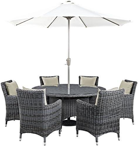 Transform your outdoor space into a stylish retreat with these exquisite dining sets, perfect for enjoying meals and gatherings in the fresh air. From the luxurious and spacious International Home Amazonia Teak Set that comfortably accommodates 10 guests, to the chic and modern Modway Summon collection featuring plush Sunbrella cushions, there’s a style to suit every preference. Whether you prefer the sturdy elegance of a Cast Aluminum set or the contemporary charm of Grand Patio’s resin wicker design, each option boasts durability and comfort tailored for outdoor living. Explore these finely crafted pieces that not only enhance your patio but also elevate your outdoor dining experience, making every meal a delightful affair.