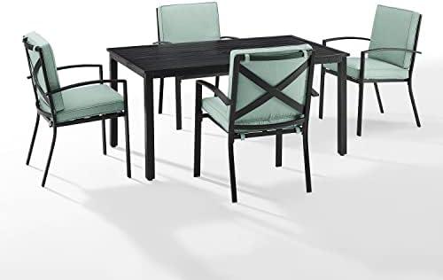 This 5-piece outdoor dining ensemble beautifully marries functionality with a chic aesthetic, making it a stunning focal point for any patio. Crafted from durable metal, the set is designed for longevity and stability in various weather conditions. The rectangular table, measuring 98.5 x 121.5 x 37 inches, allows for ample space during meals and gatherings, perfect for entertaining family and friends. The set features a sophisticated oiled bronze finish paired with plush mist-colored cushions that offer both style and comfort. Additionally, the easy assembly process, combined with removable cushion covers, ensures quick setup and simple maintenance for a hassle-free outdoor dining experience.
