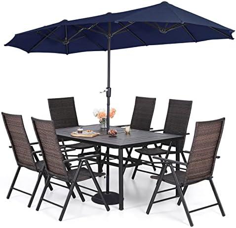 Ensemble de meubles de patio en 8 pièces avec parasol et chaises pliantes ajustables