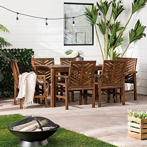 This elegant outdoor dining set offers a stylish solution for any backyard gathering or poolside lounging. Built with solid acacia wood, the set’s construction is not only pleasing to the eye but also designed to withstand various outdoor elements. The six comfortable chairs, boasting chevron detailing, can support up to 250 lbs each. Meanwhile, the spacious dining table can hold up to 150 lbs, making it an ideal spot for meals, drinks, or lively conversation. Plus, the table has the added versatility of accommodating an umbrella for sun protection, enhancing your outdoor experience regardless of the weather. Regularly applying teak oil every 2-3 months ensures the wood maintains its charm and durability over time.