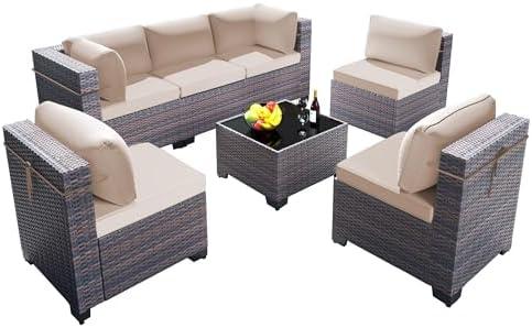 While it provides modern style and ample seating, there are considerations to keep in mind. Some users may find the assembly slightly challenging, as it necessitates following detailed instructions. Furthermore, while the cushioning is thick for comfort, it may not suit everyone’s preference for firmer seating. this stylish and functional outdoor furniture set is perfect for those looking to enhance their outdoor spaces, whether it’s a garden, balcony, or patio.