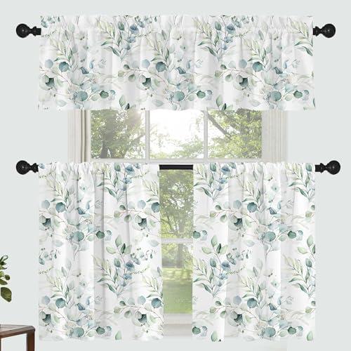 Elegant Green Floral Rod Pocket Window Tier Curtains Valance Set for Home Decor