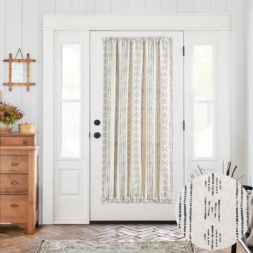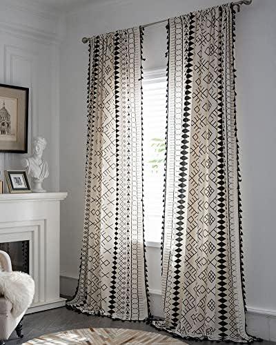 These window treatments feature a chic boho geometric design, perfect for modern or farmhouse-style interiors. Measuring 59 inches wide and 110 inches long, they’re sold in a convenient set of two panels and come with a rod pocket for effortless installation. Made from high-quality cotton linen, they provide just the right amount of light filtering, preserving privacy while allowing gentle sunlight to illuminate your space without glare, making it ideal for watching TV or relaxing. The delicate tassels add a charming touch, enhancing their aesthetic appeal.