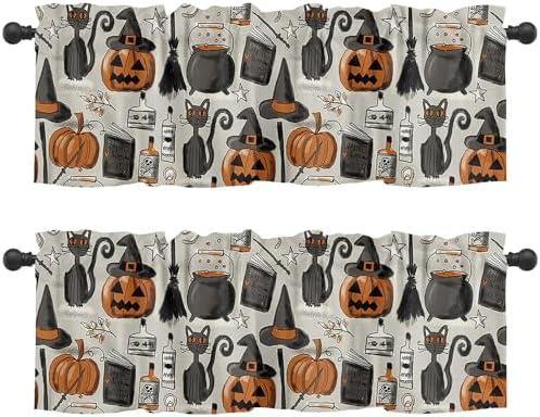 These delightful window panels offer a unique and festive addition to any room, particularly during the fall season. Crafted from eco-friendly polyester fabric, they feature vivid patterns of pumpkins and cats that capture the spirit of Halloween. Each set includes two panels measuring 54 inches wide by 18 inches long, making them ideal for various window sizes in kitchens, bathrooms, or living areas. The soft and smooth texture adds a cozy touch while providing a breathable and airy effect, ensuring a warm atmosphere at home.