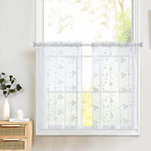 These beautiful short sheer drapes come with exquisite white floral embroidery, adding a charming touch to any small window. With dimensions of 24 inches in length and 26 inches in width per panel, they are perfect for various spaces including kitchens, bathrooms, and bedrooms. Their versatile design allows them to be hung separately or layered with other curtains for an elevated look. Crafted from 100% premium polyester fibers, these panels not only beautify your room but also let in soft sunlight while providing a degree of privacy.