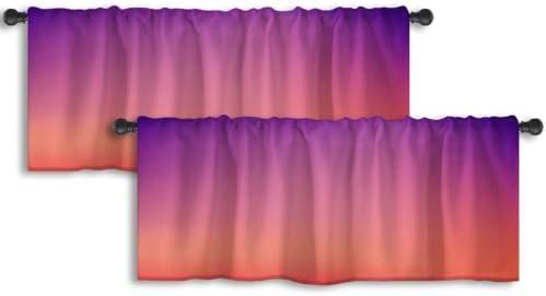 Transform your space with these vibrant, semi-sheer window treatments that beautifully blend functionality and style. Crafted from high-quality polyester, these valances are designed to allow natural light to permeate your home while offering a degree of privacy. Available in a striking purple sunset red-orange gradient, they add a dramatic flair to your kitchen, living room, or bathroom. With a 3-inch rod pocket that fits most curtain rods under 1.8 inches in diameter, they boast convenient installation and versatility. Measuring 52 inches by 18 inches, this two-pack ensures you have enough coverage for multiple windows or a cohesive look across a room.