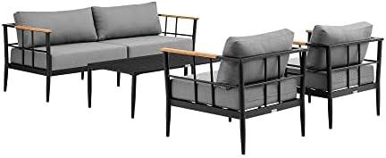 Armen Living Shari Modern Outdoor Patio Teak and Aluminum Conversation Set, 4 Piece, Black