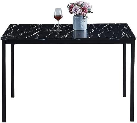 47.2″ Black Dining Table for 4 People, Modern Rectangular Black Kitchen Table with Metal Legs