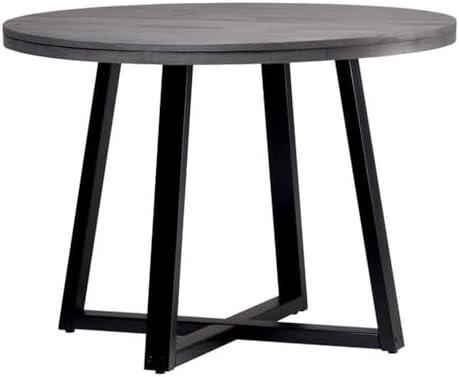 Walker Edison Rustic Solid Wood Distressed Round Kitchen Dining Room Table, 42 Inch, Grey