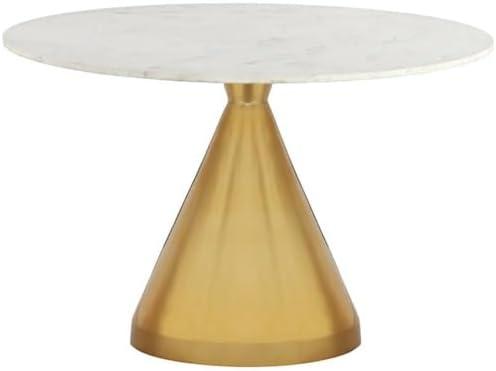 This stunning dining table features a genuine white marble top that adds a touch of elegance and sophistication to any dining area. Measuring 48 inches in width and depth, and standing at a height of 30 inches, it is perfect for both small and medium-sized spaces. The brushed gold stainless steel base not only provides robust stability but also enhances the overall aesthetic of the table, making it a focal point in your home. With a marble top thickness of 0.7 inches and a base dimension of 23 inches by 23 inches, it combines functionality with design, ensuring it can support daily dining activities while maintaining its stunning appearance.