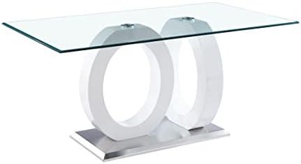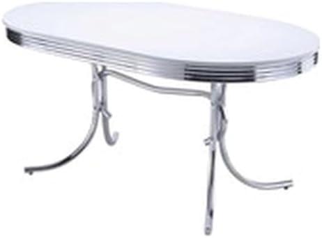 This modern dining table brings a touch of sophistication with its sleek oval shape and chrome-plated metal base. Measuring 30″ x 60″, it offers ample space for dining and socializing. The white finish pairs beautifully with the chrome-rimmed top, creating a striking contrast that elevates any dining room decor. With a height of 29.5″, this piece not only enhances aesthetic appeal but also provides comfortable dining experience. Weighing 50.6 lbs, it’s sturdy yet easy to position in your space.