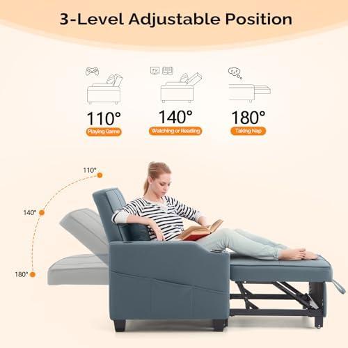 One of the standout features of this innovative furniture piece is its remarkable 3-in-1 functionality. It seamlessly transforms from an accent chair to a comfortable sleeper chair, and then into a full couch bed. This adaptability makes it perfect for various scenarios, whether we want to relax with a book, play games, or host guests. The adjustable backrest further enhances its versatility, allowing us to choose between three different angles—108°, 145°, and 180°. This means we can tailor our lounging experience to whatever activity we choose, whether it’s watching TV, catching a quick nap, or getting cozy with our favorite movie.