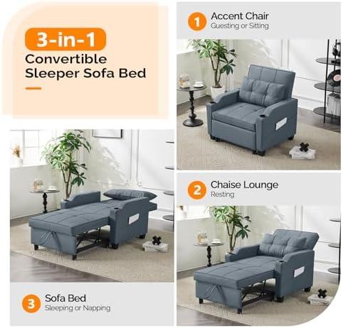 In our experience, this versatile seating solution really stands out for both its comfort and functionality. With its ability to transform from a chic accent chair into a cozy sleeper, it suits various needs in our living spaces. The adjustable backrest provides us with multiple positions—perfect for relaxing while watching our favorite shows, reading, or even taking a cat nap. Its compact dimensions make it ideal for smaller rooms, such as dorms or apartments, allowing us to maximize our available space without sacrificing style or comfort. Plus, the ample padding ensures that we experience comfort whether sitting or sleeping.