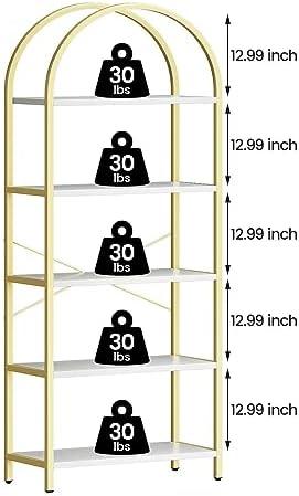 Our journey into organizing with this stylish open shelving unit has been nothing short of transformative. The five-tier design not only enhances our space with its elegant gold metal frame but also offers ample storage for both books and decorative items. We’ve found that each tier, measuring 12.9 inches in height, can support a substantial weight of up to 30 lbs, making it versatile enough for heavier books or striking decor. This has allowed us to maximize our vertical space efficiently, especially in our more compact areas, creating a visually appealing focal point in our room.