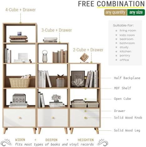 We appreciate the blend of style and function this bookshelf brings to our living space. Its nordic minimalist design adds a modern touch while offering practicality with ample storage solutions. The deepened shelves are a standout feature, perfectly accommodating various items from books to vinyl records. The four large open cube compartments provide an inviting display for our favorite decor, while the spacious drawer gives us the perfect hideaway for miscellaneous items, ensuring our space remains tidy and organized.