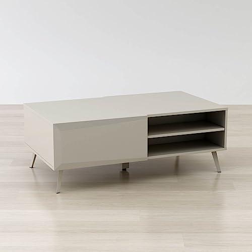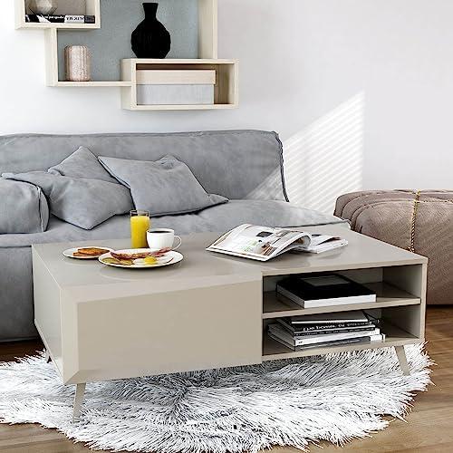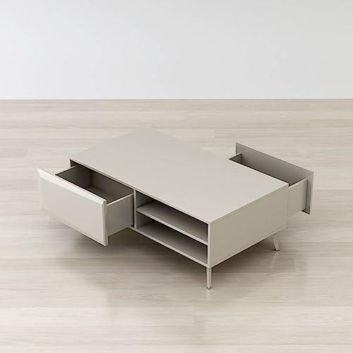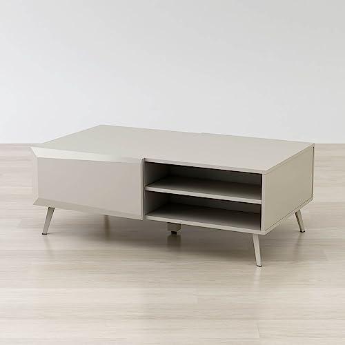 Our living space has undergone a remarkable transformation with the addition of this modern coffee table. Its sleek, light grey laminate glossy finish not only catches the eye but also effortlessly enhances the aesthetic of our contemporary decor. The table’s design strikes a perfect balance between form and function, providing ample storage room with its four tiered shelves and two convenient slide-out drawers. We find ourselves enjoying not just its beautiful presence, but also the practicality it brings, as it offers plenty of space for our magazines, laptops, and other essentials, right at our fingertips.