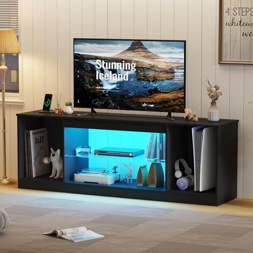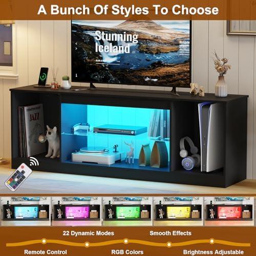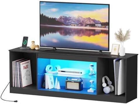 The standout feature for us is the modern LED lighting integrated into the stand, which enhances our viewing experience by providing ambient lighting options in 22 dynamic modes. This adds a personal touch to movie nights or gaming sessions, creating the right atmosphere every time. Moreover, the built-in charging station is a fantastic convenience, as it includes 2 AC outlets, 1 USB port, and 1 Type-C port. We no longer struggle with outlet shortages. Assembly was a breeze, thanks to the detailed instructions and numbered components that came included. this TV stand meets our diverse storage needs while adding a chic aesthetic to our home. For those interested, you can check it out here.