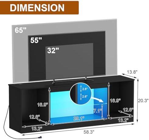 Our first impressions of the functionality were equally positive. The adjustable glass shelves were a fantastic feature, allowing for customization based on our storage needs. We appreciated the inclusion of a charging station with multiple ports, which was perfect for our growing collection of gadgets. The LED lights added a dynamic flair, offering an array of colors to match our mood. Measuring at 58.3 inches wide, it comfortably supported our 65-inch TV while seamlessly integrating into our living room decor. this product effectively combined aesthetics and practicality, setting the stage for a fantastic entertainment experience.