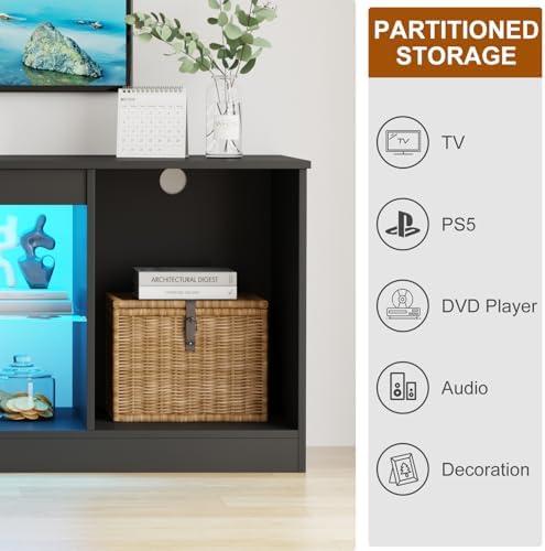 In our experience, this entertainment center perfectly blends functionality with style. The adjustable glass shelves provide ample space for our electronics, allowing easy customization based on our needs. Furthermore, the fixed cabinets on each side offer great storage for gaming consoles and speakers, keeping everything organized and out of sight. The sleek design and beautiful black finish make it a versatile addition to any room, enhancing both modern and traditional decor. The built-in LED lights are a fantastic feature, adding an ambiance that transforms our viewing experience whether we’re enjoying a movie night or hosting friends for a game session.