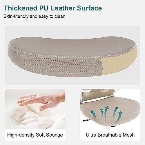 - Sleek Aesthetic: The khaki PU leather finish lends a modern, stylish touch to our workspace. Coupled with the breathable mesh backrest, it not only looks good but also feels great.
