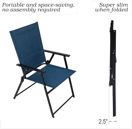 - Space-saving design: The foldable blue Textilene chairs are lightweight and easy to store, adding convenience for our patio space.