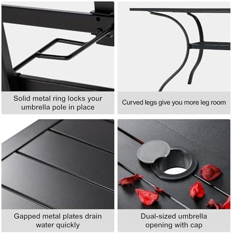 The Rectangle Patio Dining Table brings together both elegance and functionality that make it an ideal addition to our outdoor space. With dimensions of 63″ x 38″ x 28″, its sleek black surface is crafted from eco-friendly coated steel, ensuring durability and easy maintenance. This generous surface area comfortably accommodates up to six people, making it perfect for family gatherings or entertaining guests. The design harmonizes with various outdoor aesthetics, allowing us to seamlessly blend style with practicality. Whether it’s a casual brunch or an evening dinner party, this table sets the stage for memorable moments.