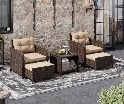 This outdoor furniture ensemble offers a perfect blend of modern design and functionality, making it a great addition to any balcony or small patio. The set consists of two armchairs, two footstools, a coffee table, and a storage table, all crafted from weather-resistant wicker and supported by a sturdy, powder-coated steel frame. The removable cushions come with zippers, allowing for easy cleaning. With its charming rattan wicker-weaved backrests and cushioned seats, this set provides an elegant touch while maintaining low maintenance requirements. Additionally, the special nesting feature of the coffee table and storage table optimizes space, making it convenient when you need to create more room.