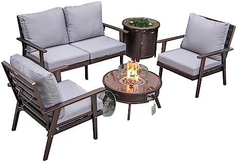 Modern Aluminum 5-Piece Patio Set with Fire Pit