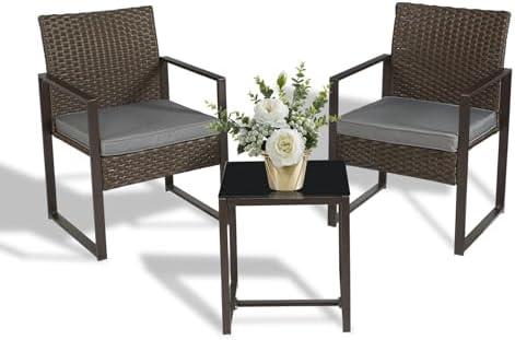 However, while this set offers an appealing combination of style and practicality, there are some considerations to bear in mind. Although the rattan is weather-resistant, prolonged exposure to harsh elements may still affect its longevity over time. Additionally, the assembly process, while straightforward, may require some effort and time. this bistro set strikes a balance between aesthetics and functionality, making it an excellent choice for anyone looking to create a cozy outdoor retreat.
