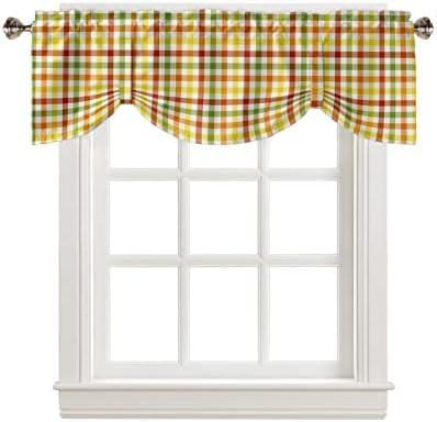 Adjustable Tie-Up Curtain Valance with Fall Colors and Plaid Design
