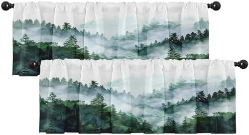 The exquisite design of these window treatments captures the essence of nature, featuring a serene green misty forest and majestic mountains. Made from 100% polyester, these valances combine high-quality craftsmanship with a soft and comfortable texture. They easily enhance a wide array of home decor styles, making them a versatile choice for various settings, including the living room, kitchen, or dining area. Their generous sizing of 18 inches by 52 inches, combined with a convenient 3.2-inch rod pocket, ensures a smooth and straightforward installation process, allowing you to effortlessly elevate your home ambiance.