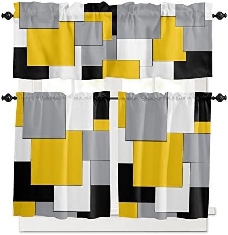 These kitchen curtains and valances bring a contemporary flair to your home decor with their modern abstract art design. Featuring a color block theme in shades of gray, black, and yellow, they add an eye-catching element to your living space. The semi-sheer material allows natural light to filter through while still providing a degree of privacy, making them ideal for kitchen or living room windows. With a convenient rod pocket design, installation is a breeze, enabling you to quickly dress up your windows without the fuss.