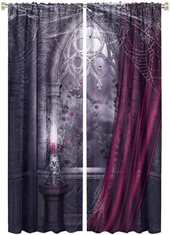 Stylish Dark Curtains with Skull and Rose Design