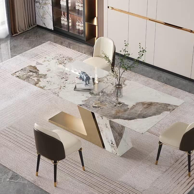 This striking furniture piece is a perfect blend of minimalist modern elegance and practicality. Measuring 78.7429.9239.37 inches, it provides ample space for both family dinners and social gatherings. The light marble top, framed by chic gold accents, contributes to a refined and upscale ambiance, effortlessly complementing any contemporary home decor. Its robust, stable construction is devoid of rollers or turntables, ensuring it remains a steadfast foundation for your dining experiences.