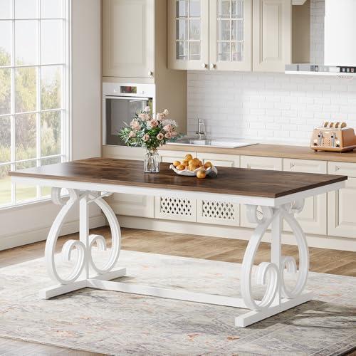 This sizable dining table features an elegant combination of a light brown tabletop and white pedestal legs, creating a sophisticated aesthetic that complements various home decors. With dimensions of 78.7″L x 39.3″W x 28.7″H, it comfortably accommodates 8 to 10 people, making it an excellent choice for family gatherings, dinner parties, or holiday celebrations. The versatile design also allows it to function as a desk or a table for other activities, providing flexibility for both work and social engagements.