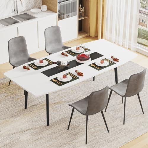 This elegantly designed dining table measures 70.86 inches in length and 35.43 inches in width, providing ample space for 6 to 8 individuals to enjoy meals comfortably. Crafted from high-quality MDF and reinforced with sturdy metal legs, the structure promises durability and stability. The smooth, waterproof, and scratch-resistant tabletop ensures easy maintenance, allowing you to spend more time enjoying meals rather than cleaning up. Additionally, the tapered leg design maximizes legroom, making it a fabulous choice for family gatherings or dinner parties.