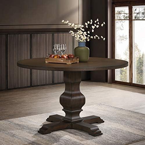 Roundhill Furniture Havre Wood Pedestal Round Dining Table, Burnished Oak