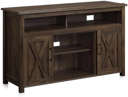 This entertainment center impresses with its rustic barn-style cabinet doors and vintage black handles, seamlessly blending charm and functionality. The design features two adjustable shelves that provide ample space for electronic devices and media accessories, while the two enclosed cabinets allow for organized storage, keeping your space tidy. With overall dimensions of 48″ x 16″ x 30″, it’s suitable for TVs up to 50 inches, making it an elegant addition to any living room or bedroom.