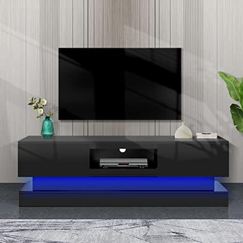 This stylish TV console offers a contemporary aesthetic that seamlessly fits into any living space or home office. Designed to accommodate TVs up to 55 inches, it features a sleek finish and clean lines that enhance its elegance. With the dynamic LED lighting, you can easily set the mood for movie nights or gatherings by adjusting the colors and brightness. The double-layer structure not only adds stability but also introduces a unique visual appeal to your setup.