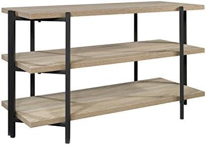 The console offers a unique blend of rustic elegance and industrial style, making it an eye-catching addition to any living room or entertainment space. Accommodating televisions up to 42 inches and supporting up to 50 lbs, it features a durable, 1-inch thick top and shelves that are perfect for holding video game consoles, books, or decorative items. The Charter Oak finish along with a powder-coated metal frame gives it a contemporary yet warm feel, allowing it to complement various interior designs effortlessly. Installation is a breeze with its simple, no-tools-required assembly, making it accessible for anyone looking to enhance their decor quickly and efficiently.