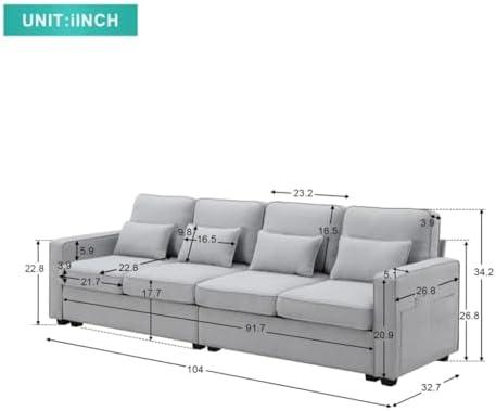 Welcome to our insightful review of the “Linen Fabric 104” 4-Seater Sofa! As we settled into this inviting piece of furniture for the first time, we couldn’t help but appreciate its blend of style and practicality. Crafted with a solid wood frame and enveloped in thick, breathable linen fabric, this sofa promises comfort without compromising aesthetics. The high-density sponge seat ensures we sink into relaxation after a long day, all while the strategically placed armrest pockets keep our essentials—like magazines and remotes—within arm’s reach. With a sturdy construction that supports up to 330 pounds per seat, we found it’s not just a place to lounge but also an ideal spot for gatherings and gatherings of friends. Join us as we dive deeper into our experiences with this versatile addition to our living space, exploring its features, design, and overall comfort.