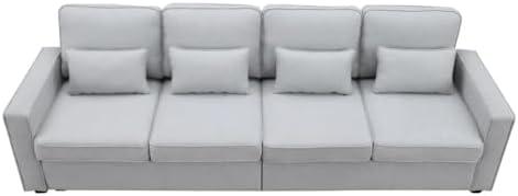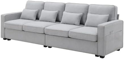 The experience we had with this four-seater couch was surprisingly delightful. From the moment we received it, we could tell it was built to last. The solid wood frame gave us confidence in its durability, while the high-density sponge seat bag provided a luxurious level of comfort with remarkable resilience. One of our favorite features is the linen fabric, which not only ensures breathability but also feels cozy even during extended lounging sessions. The spacious seating depth—allowing each seat to support up to 330 lbs—stood out as a strong point, especially for entertaining guests during gatherings, making it an ideal centerpiece for our living room.