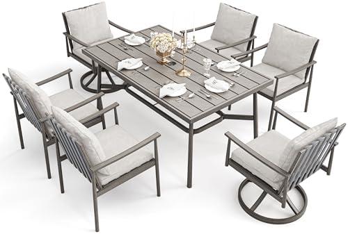 HAPPATIO 7-Piece Outdoor Dining Set for ⁢6, Aluminum Patio Dining⁣ Set Includes 4 Dining Chairs, 2 Swivel Dining ⁤Chairs, and ⁤1 ‌Large ​Rectangular Table with Umbrella Hole, for ⁢Lawn Porch Backyard, ‌Grey