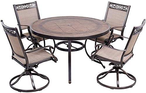 5 Piece Patio Dining Set ⁤Outdoor Furniture, Aluminum⁣ Swivel Rocker Chair Sling Chair​ Set & 48 inch⁣ Round Crafttech Top​ Aluminum Table with Umbrella⁢ Hole