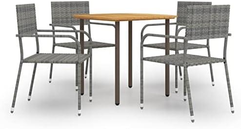 vidaXL Garden ⁣Dining Set 5 ⁣Piece Patio Furniture Armchair Outdoor Seating Table and Chair Dining Set ‌Dinner Table Dinner​ Chair Poly Rattan
