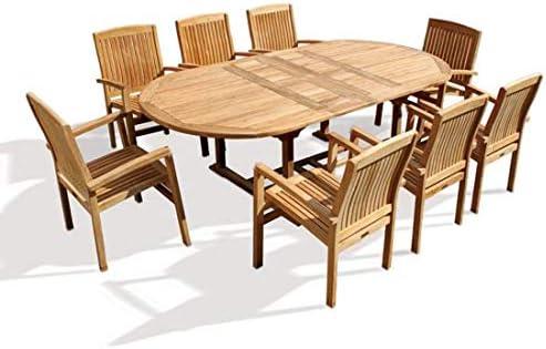 New 9Pc Grade-A Teak Outdoor Dining Set-95″X40″ Oval ‍2 Extension Table + 8 Verona Stacking Chairs with cushions