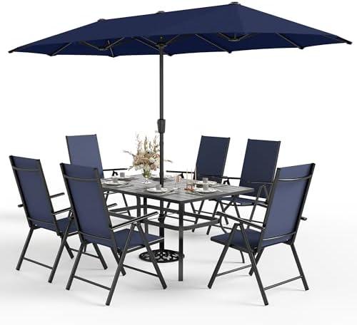 Sophia​ & William 7 ‌Pieces Foldable Patio Dining Set with 13ft Navy Blue Umbrella, Folding Outdoor Dining Set for 6, ​Rectangular Metal Patio​ Table and Sling Chairs ​Set, Blue